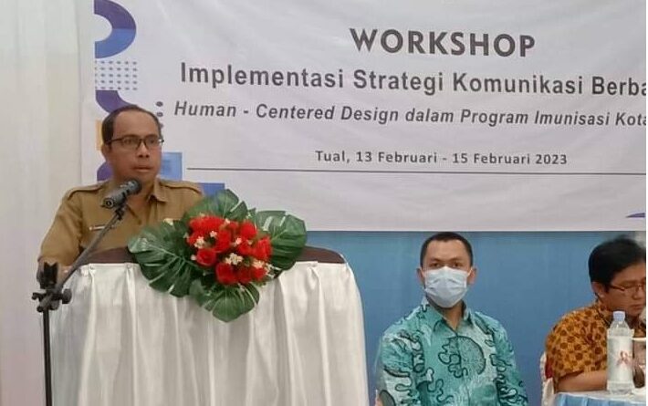 Kementerian Kesehatan dan UNICEF menggandeng Dinas Kesehatan Provinsi Maluku bersama Dinas Kesehatan Kota Tual melakukan kegiatan Workshop Implementasi Strategi Komunikasi Berbasis Human – Centered Design dalam Program Imunisasi bagi tenaga kesehatan di Kota Tual, Senin (13/02/2023) – Rabu (15/02/2023)